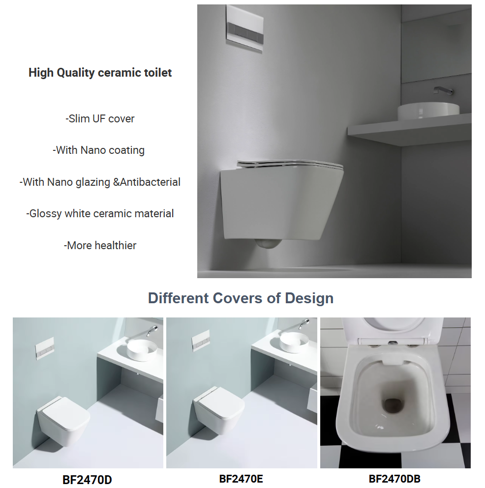 Il WC sospeso BF2390E-Matt presenta un design moderno e compatto, con scarico a gravità, doppio tasto e copriwater UF sottile. Ideale per ambienti alberghieri di alto livello.