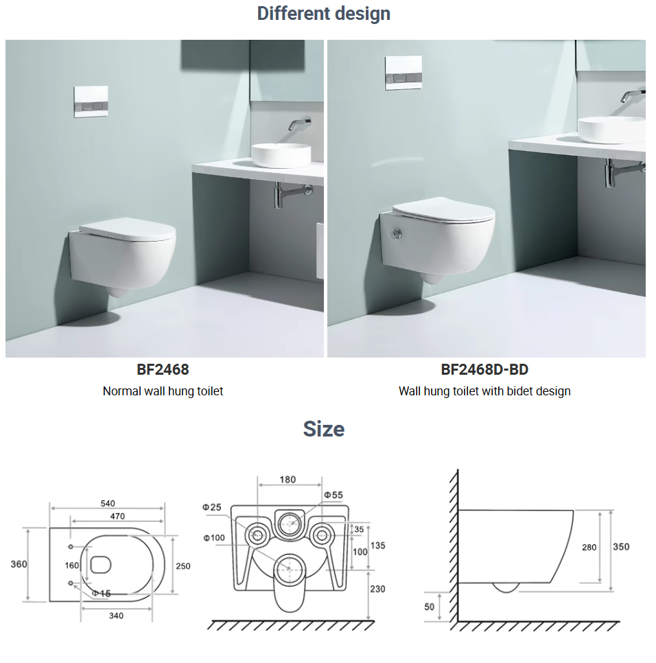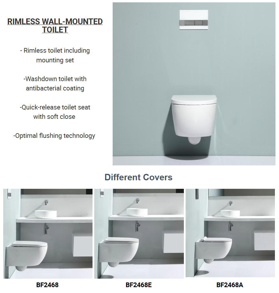 Современный настенный керамический унитаз в европейском стиле с двойным смывом и скрытым бачком.