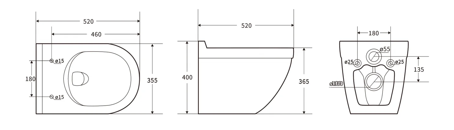 NOTE | The wall toilet complete set includes the toilet bowl, seat cover & installation kit; but NOT include cistern. | ||