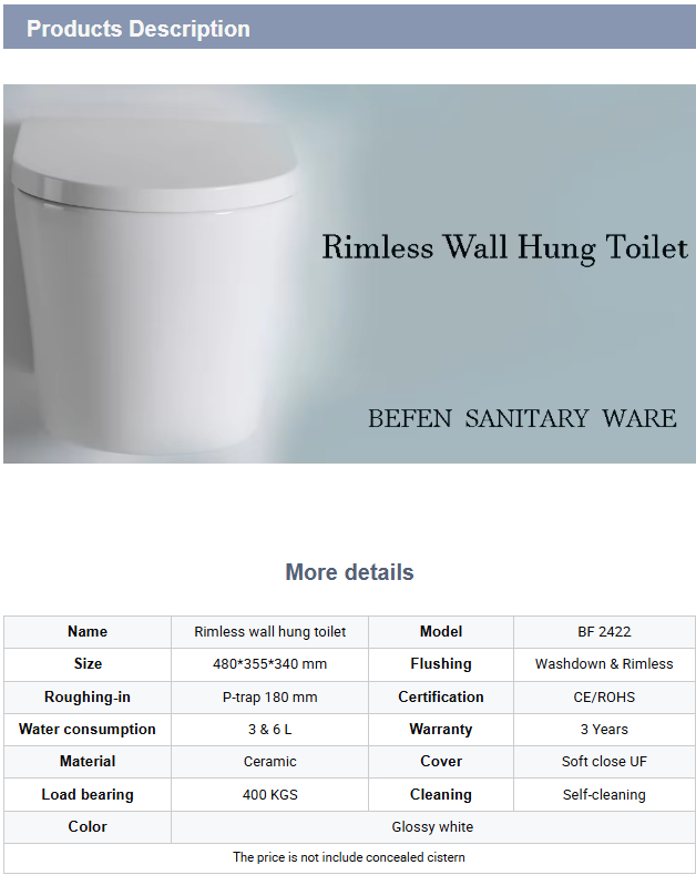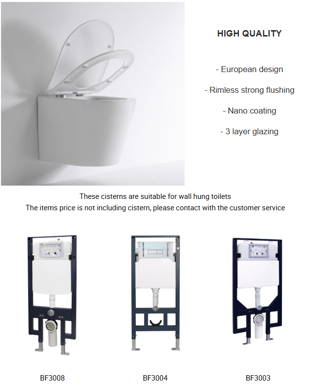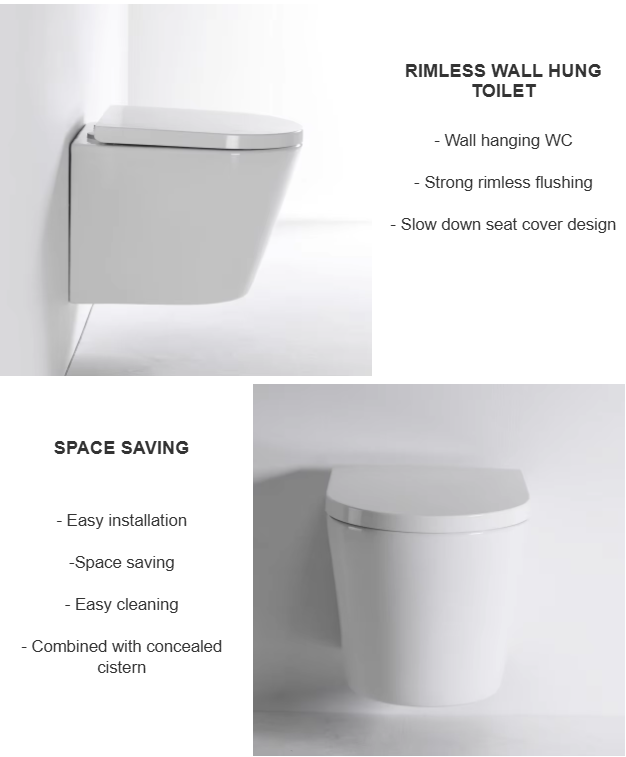 The Rimless Wall Hung Toilet offers a perfect blend of modern design and efficient functionality. With self-cleaning features, it ensures hygiene and ease of maintenance.