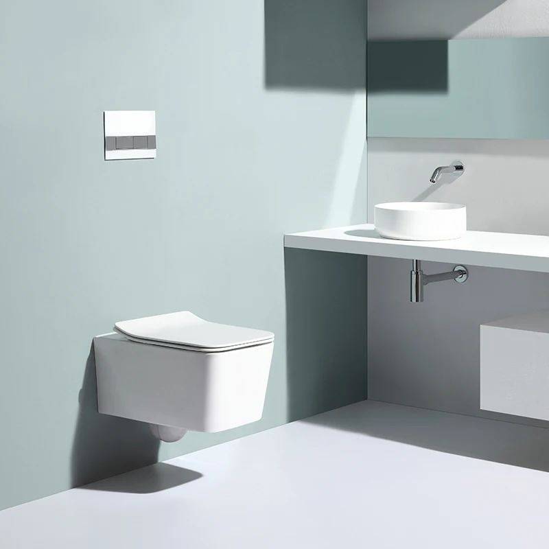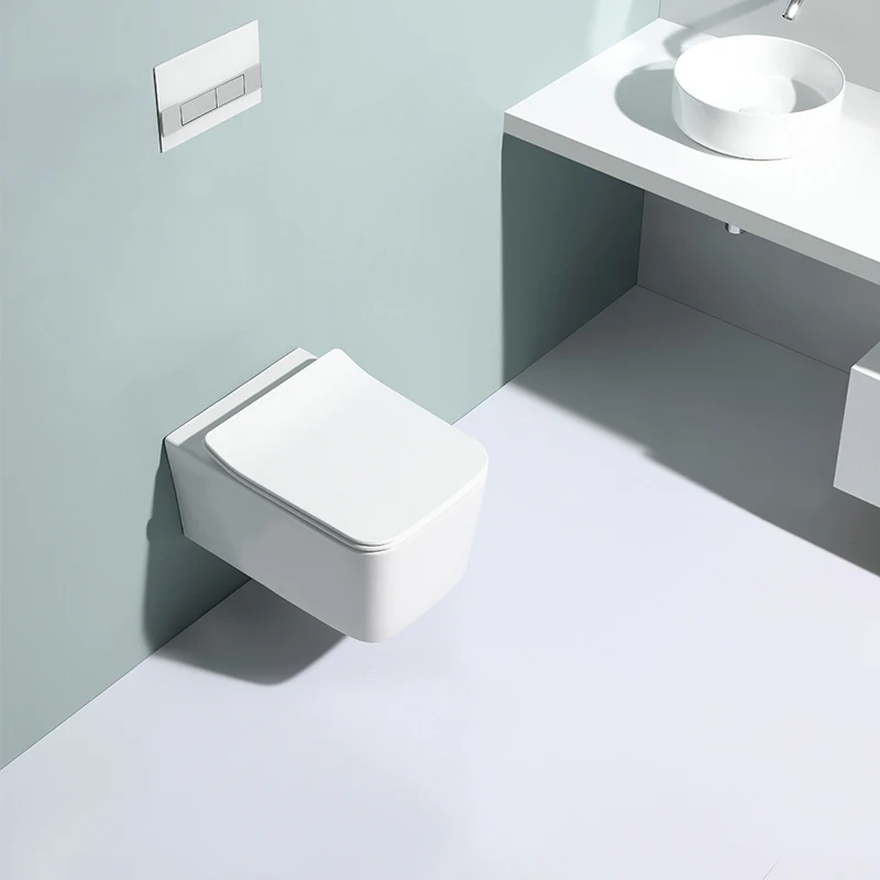 Modern wall-hung ceramic toilet BF2467A featuring washdown flushing, dual flush water saving system and soft close UF seat, designed for residential and commercial bathrooms.