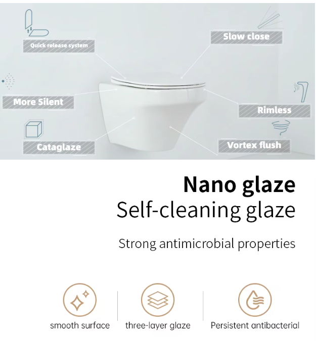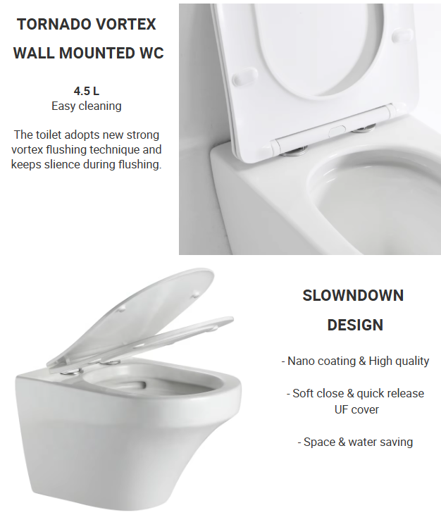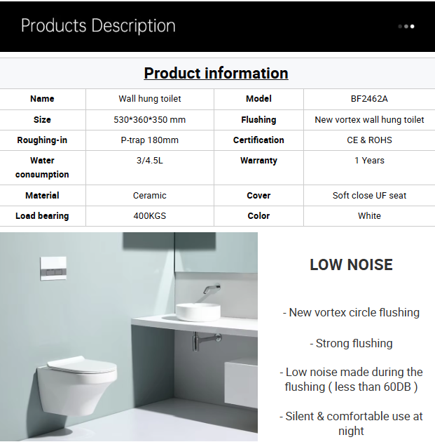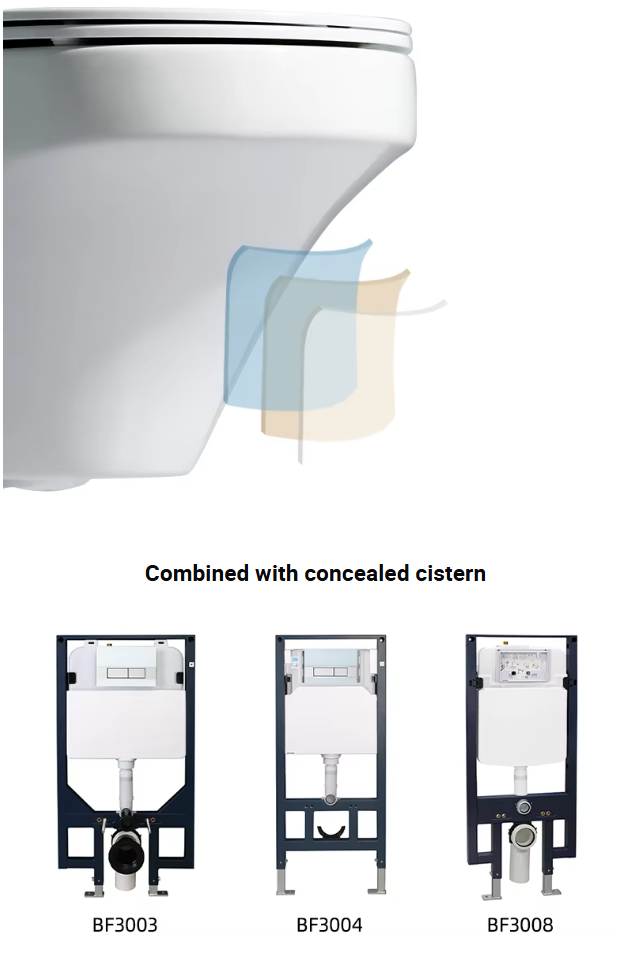 The BF2462A Wall Hung Toilet combines modern aesthetics with eco-friendly functionality, it is ideal for contemporary bathrooms seeking both style and performance.