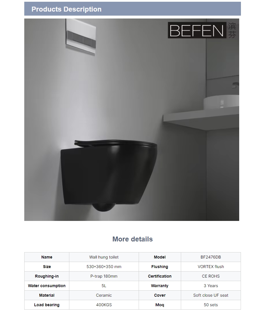 Productbeschrijving – Model 2476 Mat Zwarte Wandcloset