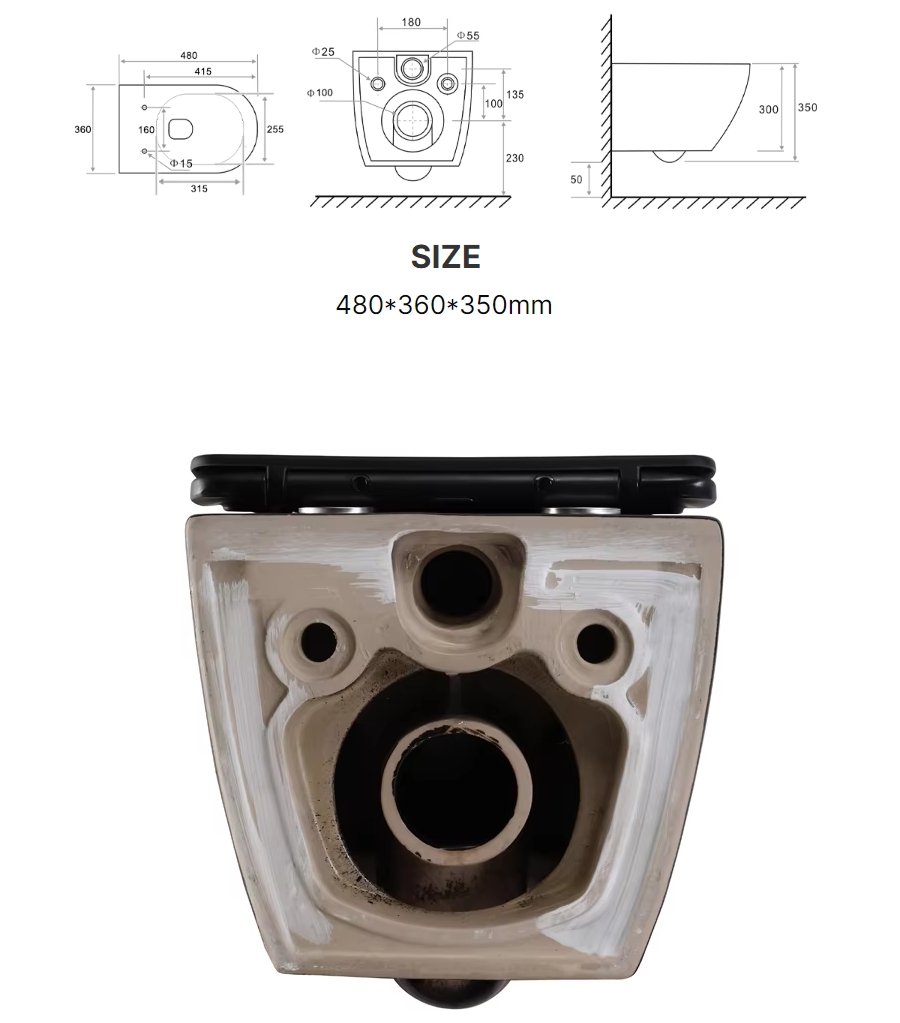 Product Description – Model 2478 Matte Black Wall-Hung Toilet