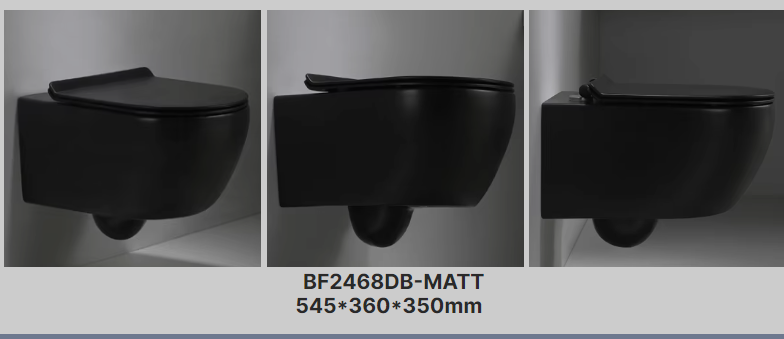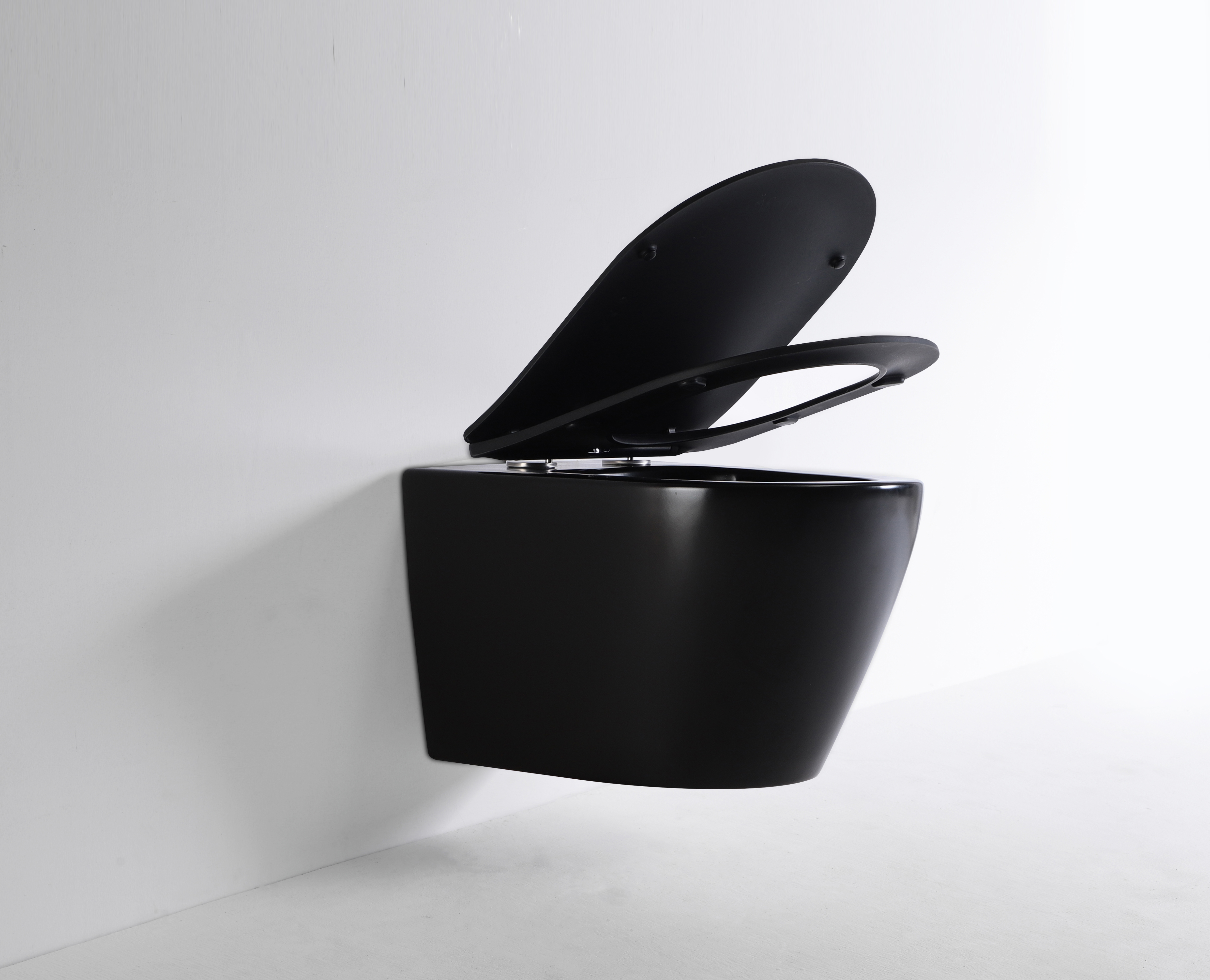 This modern matte black wall-hung toilet (Model 2476) features a sleek
