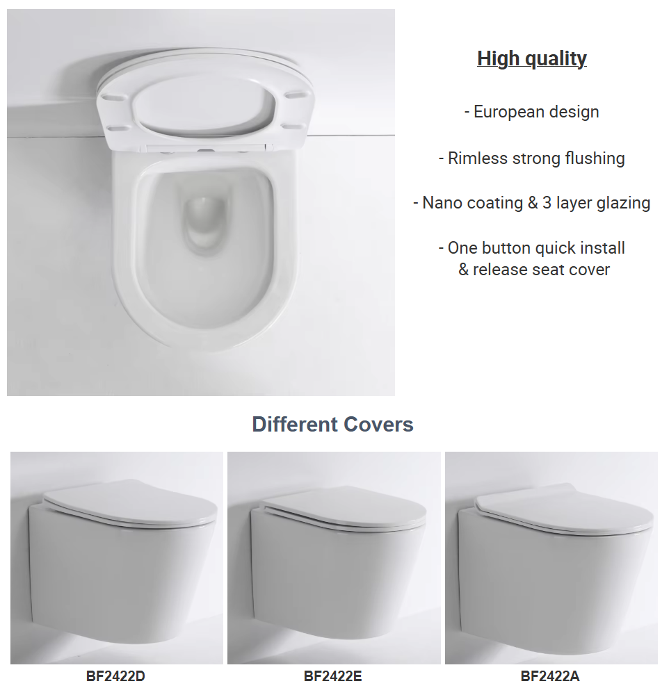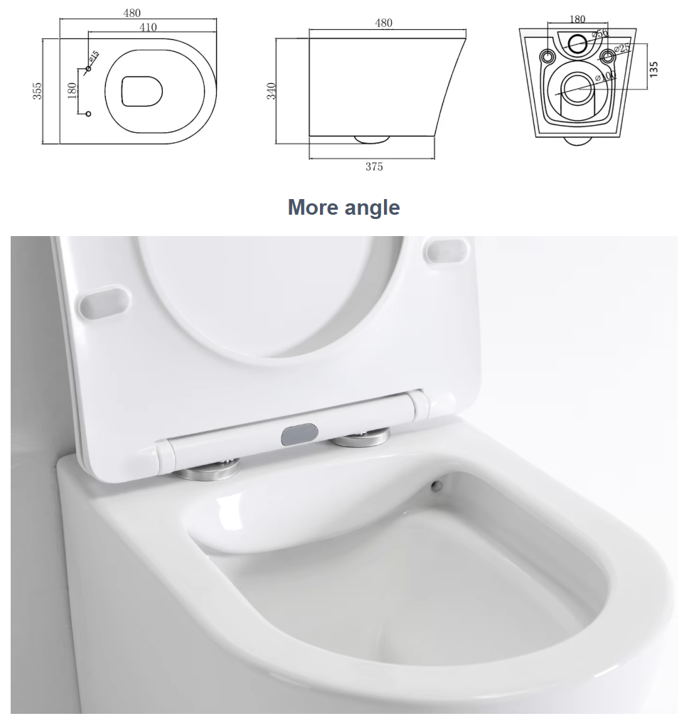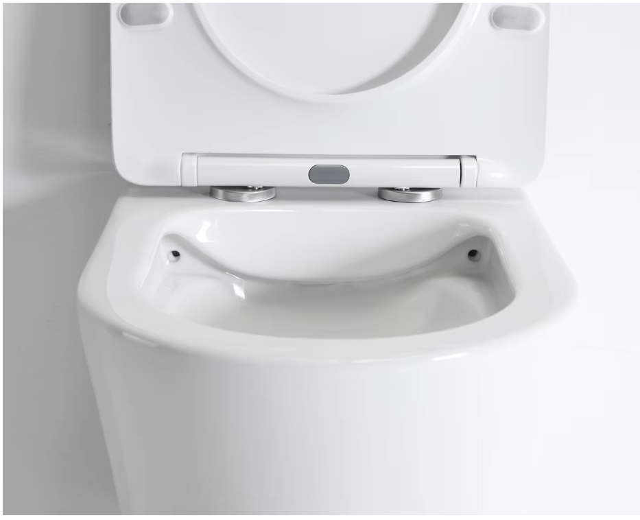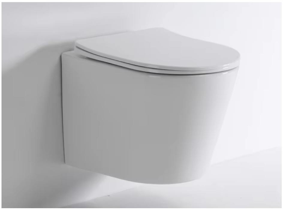 this wall-hung toilet ideal for modern bathrooms. Crafted from high-quality ceramic and equipped with a soft-close PP seat cover, it integrates a concealed tank system for a cleaner look and quieter flush. Suitable for both residential and commercial spaces.