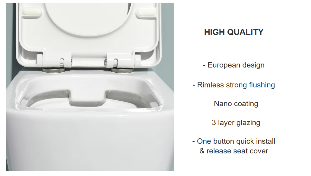 Silent Function/Soft-Closing Lid/Anti-Stain Surface/Anti-Bacterial Glaze/Easy-to-Clean Design: Yes