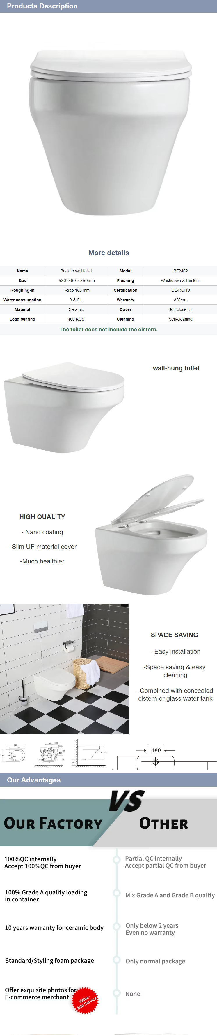 Space Saving: Wall-hung design frees floor space