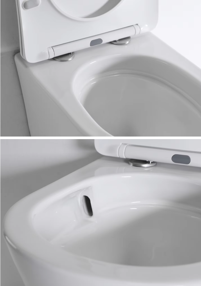 Contemporary wall-hung ceramic toiletl for modern bathrooms in homes, hotels, and restaurants.