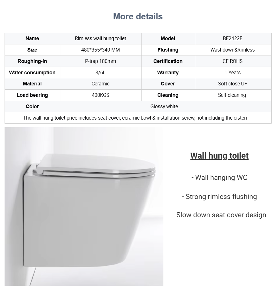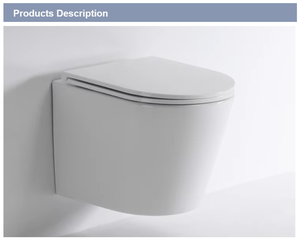 This sleek wall-mounted toilet crafted from high-quality ceramic, it offers exceptional flushing performance while saving space — ideal for modern bathrooms in homes, hotels, and commercial settings.