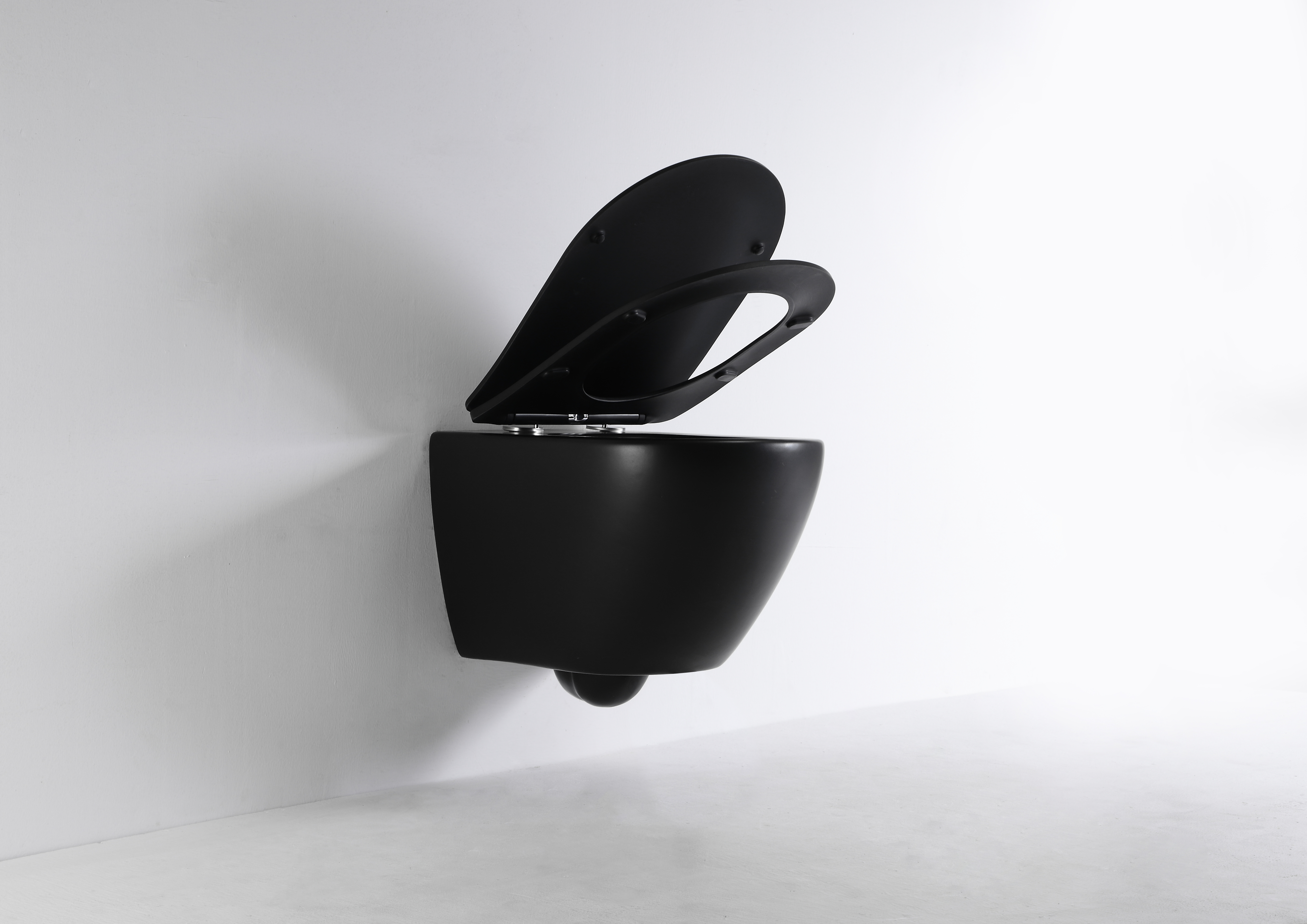 O modelo 2478 é um vaso sanitário suspenso preto fosco com design arredondado e acabamento sofisticado.