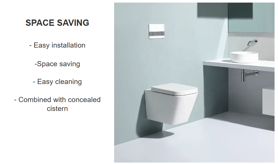 Современный настенный туалет и раковина с элегантным минималистичным дизайном, идеально подходящие для современных ванных комнат.