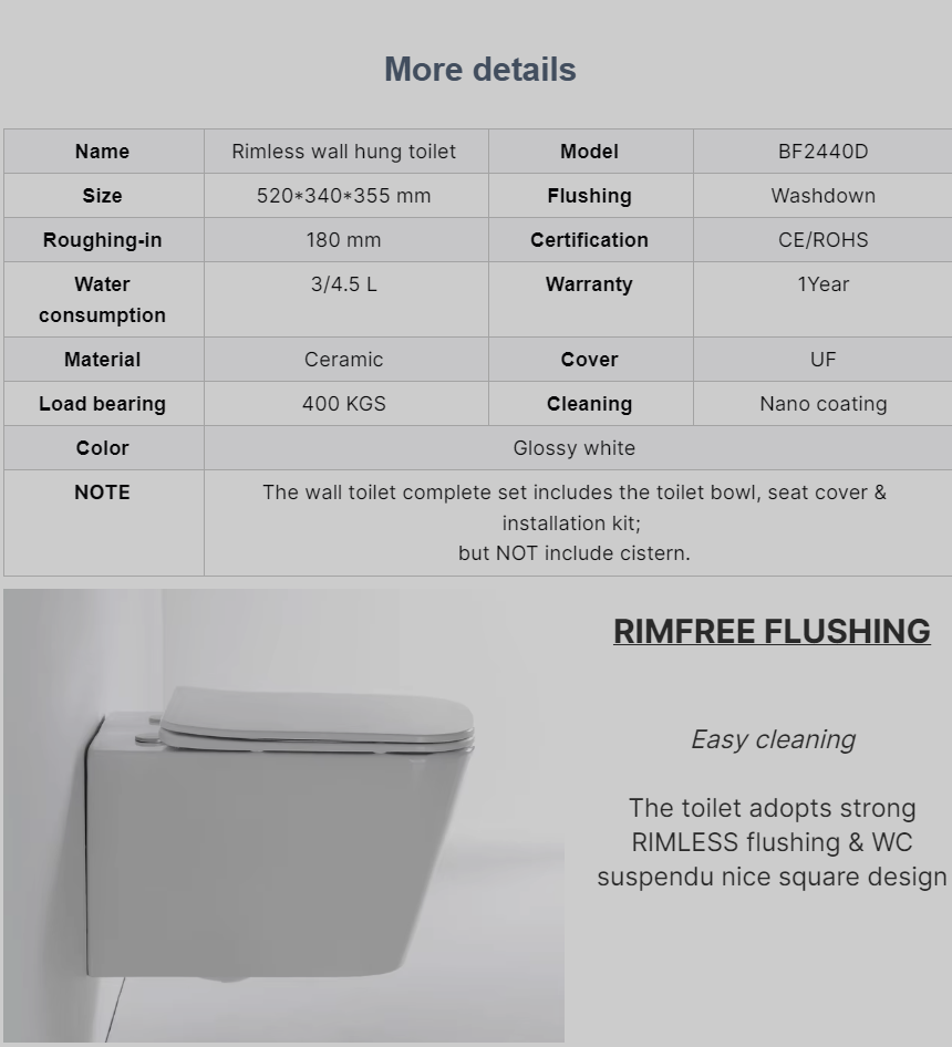 Type : Toilette murale suspendue