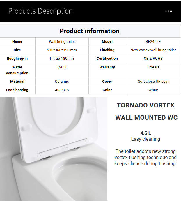 Cette toilette suspendue avec double chasse d'eau offre une conception moderne et élégante, idéale pour les espaces contemporains tels que les appartements, les hôtels et les bureaux.
