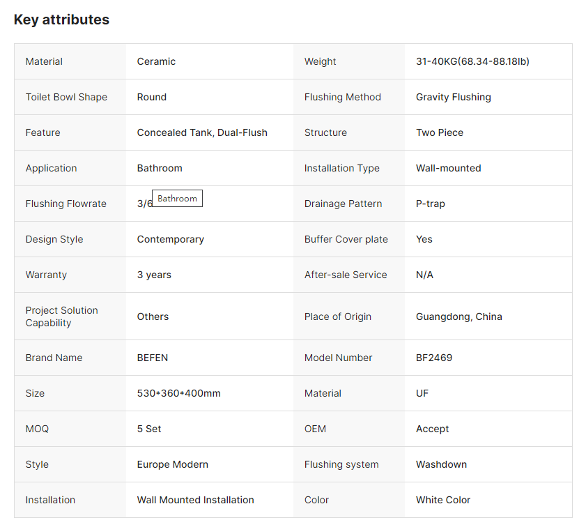 Type : Toilette murale suspendue