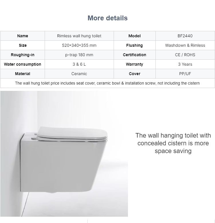 Installation : Suspendu au mur, compatible avec réservoir encastré