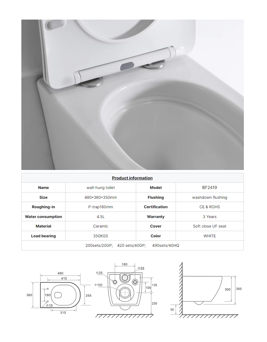 Wall Hung Toilet 2419A - Turbo Vortex Flush