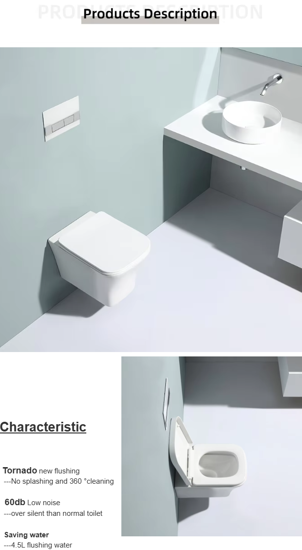 A high-performance, water-efficient, and space-saving wall-hung toilet designed for modern bathrooms.