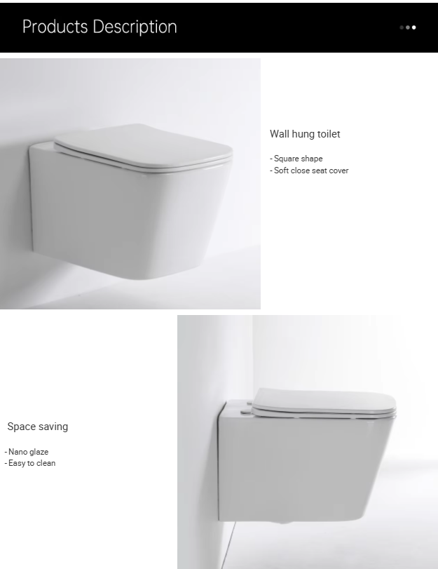 The Wall-Hung Toilet with Nano Self-Cleaning Glaze offers advanced dual flush functionality, and easy maintenance. This eco-friendly and space-saving solution is ideal for apartments, residential buildings, and hotels.
