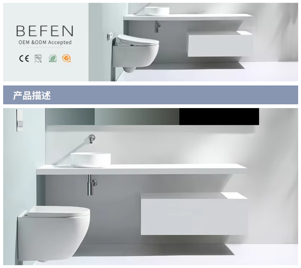 A modern and minimalist wall-mounted toilet and sink set, perfect for contemporary bathrooms.