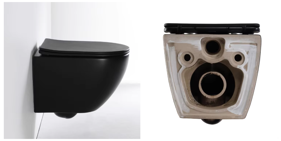 This modern, wall-hung toilet features a concealed tank with dual-flush. Its sleek design and high-quality build make it ideal for apartment bathrooms.